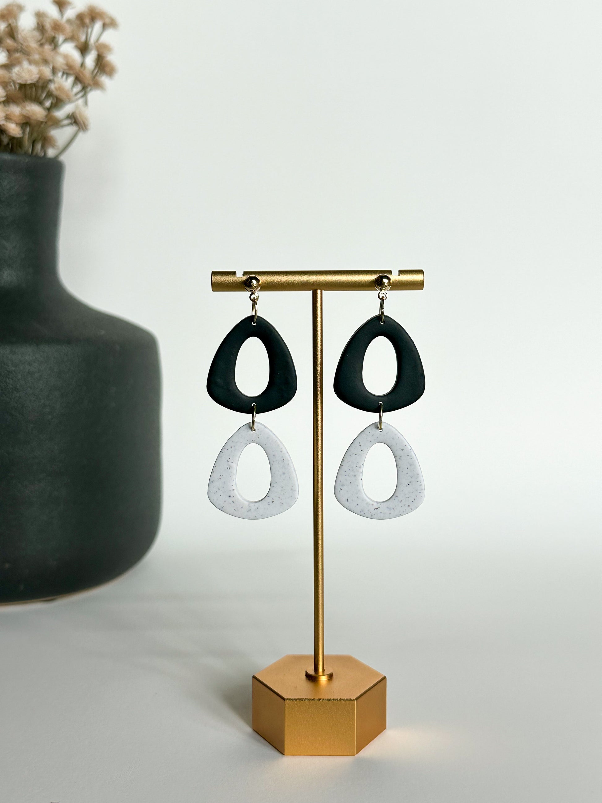 polymer clay, brass, 18k gold- plated hook/ post.