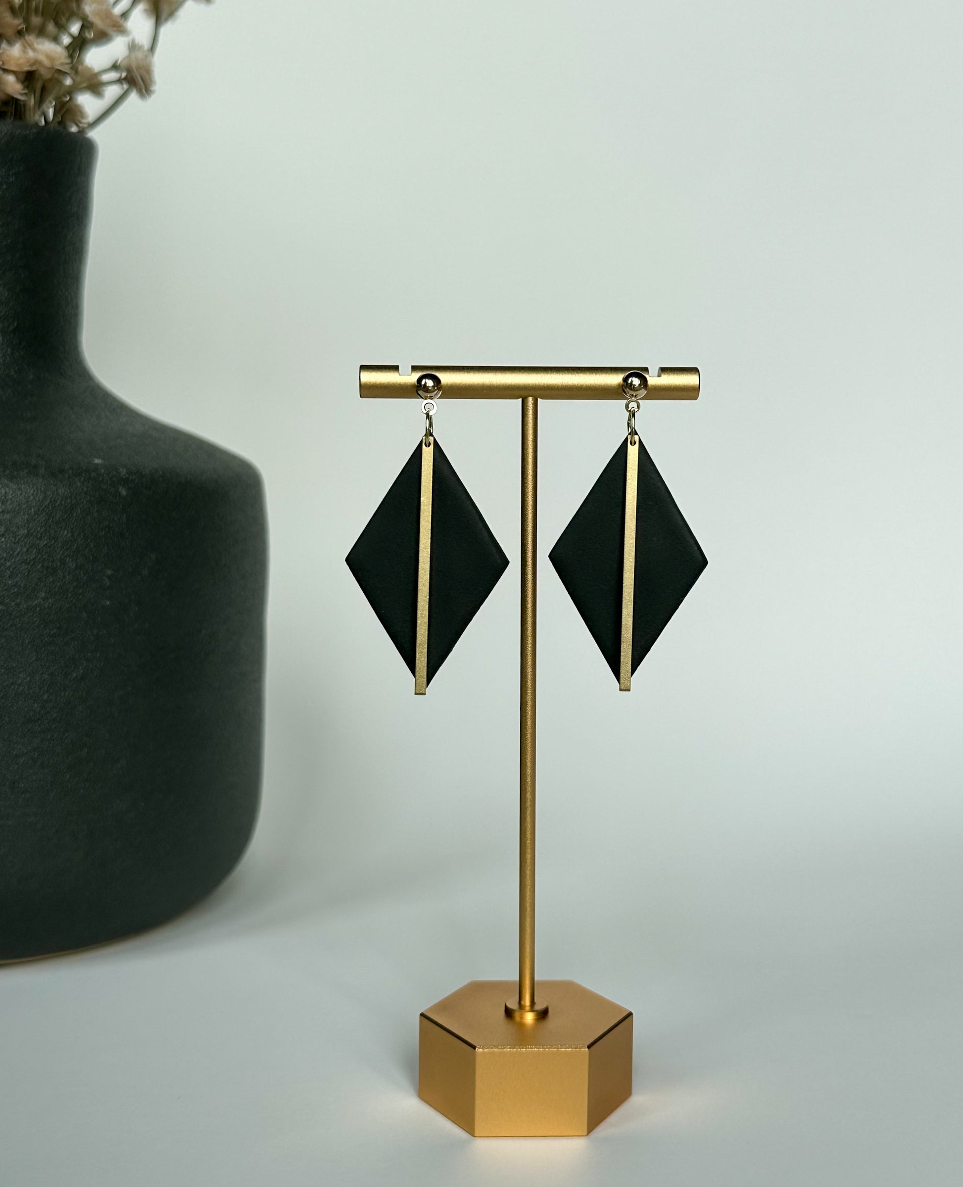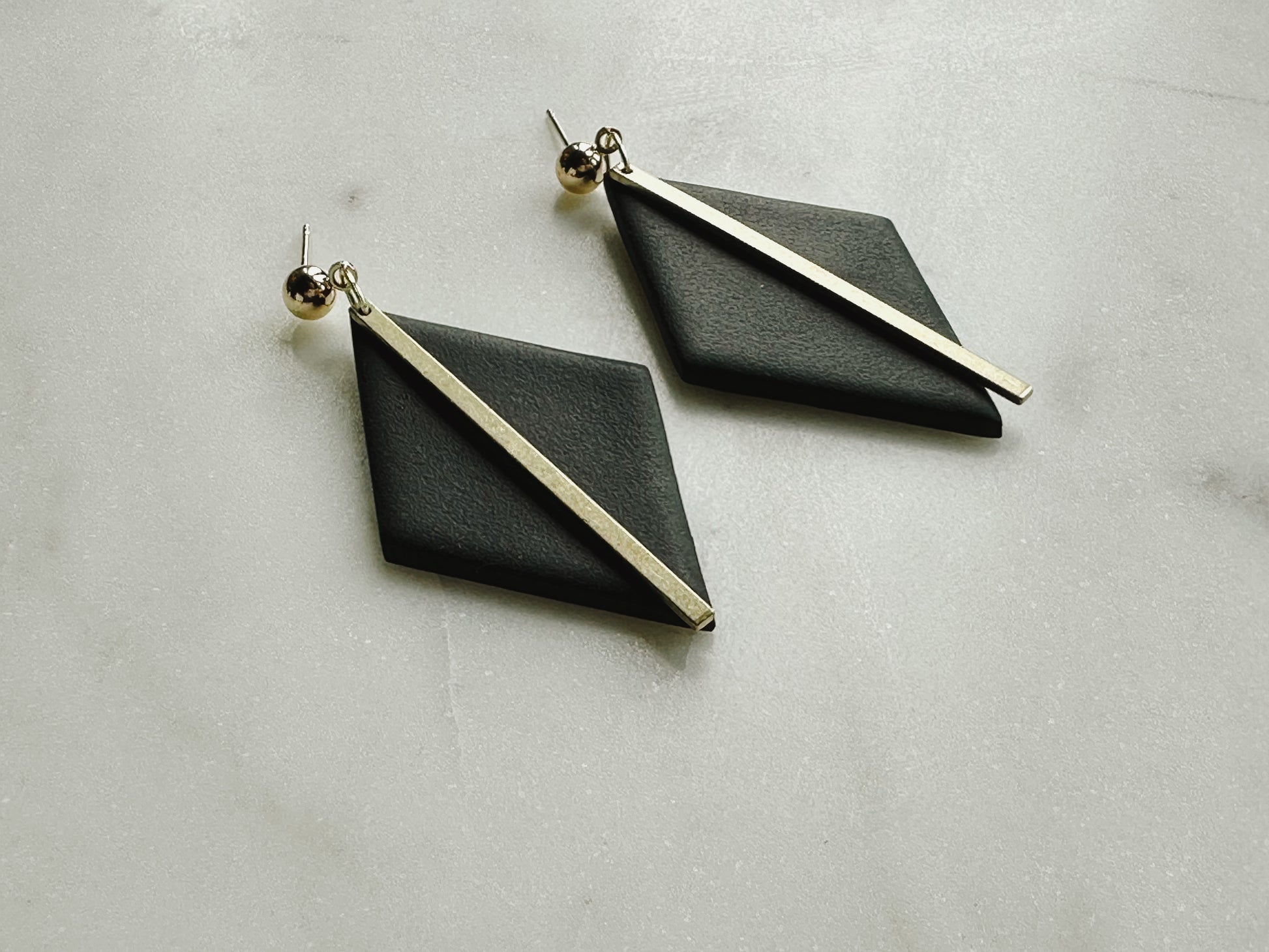 polymer clay, brass, 18k gold- plated hook/ post.
